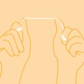 zwischen Daumen und Mittelfinger beider Hände gehalten