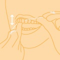 Zahnseide wird nun U-förmig um einen Zahn herum gelegt,